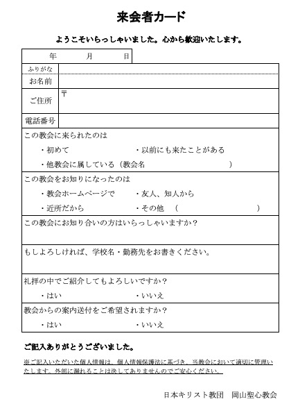 初めて礼拝に出席される方